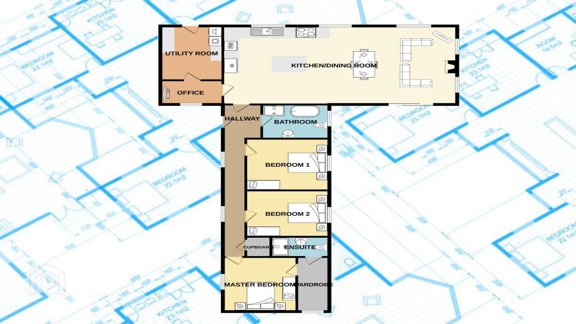 The Property is presented in a modern T-shaped layout and has been designed to maximise space, light and flow throughout.