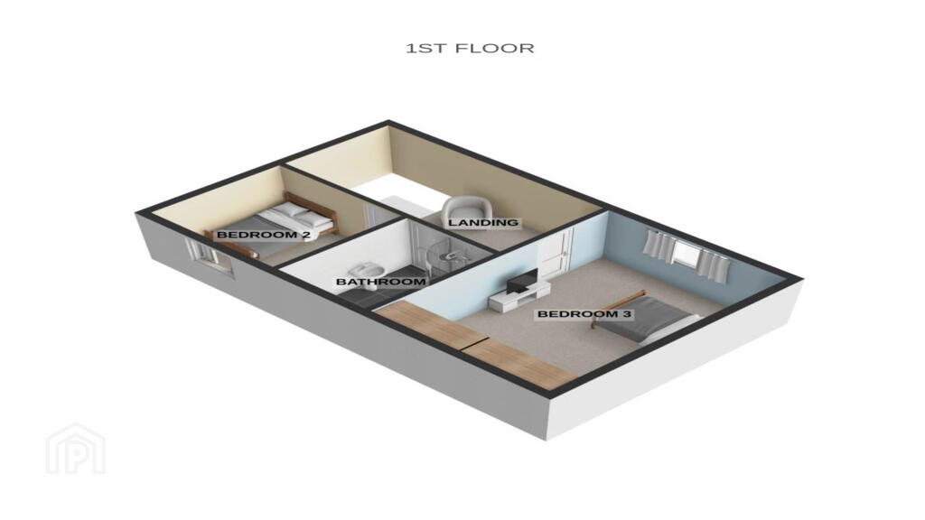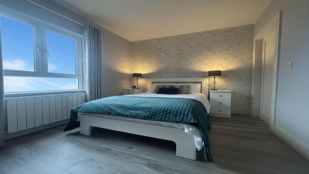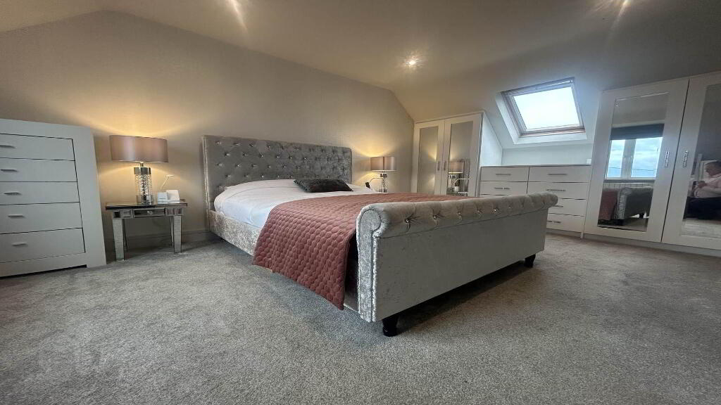 Upstairs, the Landing features a Chic and Comfortable Design, Leading to Two further Generously sized Bedrooms, one of which boasts Sea Views, along with the Main Bathroom.